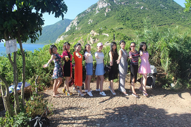 整個行程共計兩天,兩天時間內(nèi)團隊成員始終被一種和諧、溫馨的氛圍所籠罩。抵達目的地的時間是下午六點,路上有點塞車,一路走來,萬千風(fēng)光盡收眼底,特別是大巴快行至楊梅坑停車場時,放眼望去,碧水藍天連接在一線之間,舒適的海風(fēng)吹來,沁人心脾。