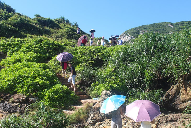 第二天,我起得很早,就為了記錄海邊的冉冉升起的太陽,而大部分同事們因為昨晚戰(zhàn)斗得太晚,還在夢里水鄉(xiāng)。太陽完全升起后,我一個個宿舍的敲門,叫醒了同事們,大家草草解決了早餐,然后一起去參觀了當(dāng)時周星馳拍攝《魚美人》的拍攝基地,領(lǐng)略了楊梅坑真正讓人回味的無限風(fēng)光,我在想,當(dāng)時大導(dǎo)演之所以選擇這里做為拍攝基地,不也是因為這里的美景嗎?除了美景,在我看來,這里的房子也是很有特色的,房子都是小木屋結(jié)構(gòu),很矮但很別致,和周圍的青山綠水相依,不得不讓人有一種想在此住上一晚的強烈沖動。