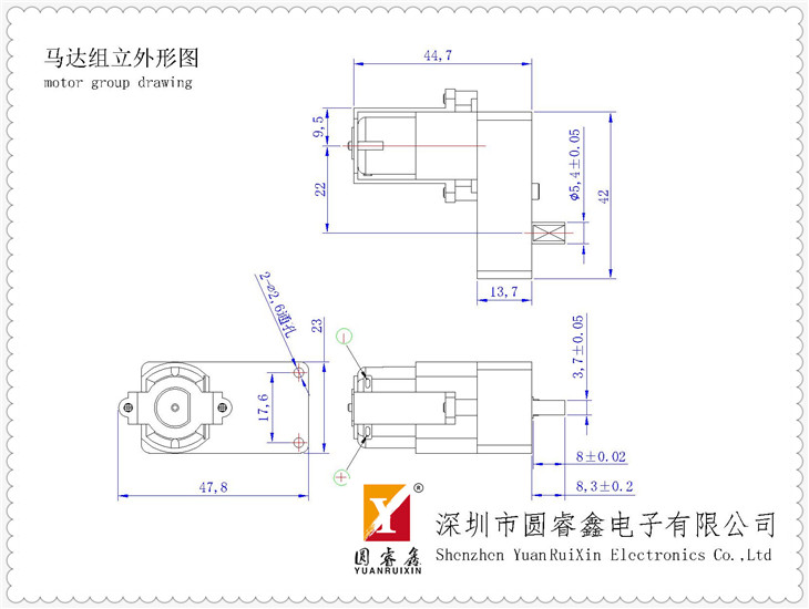 深圳市圓睿鑫電子有限公司自2008年創立以來,經過誠信耕耘,公司逐步發展壯大,在為期兩年的時間內,已通過ISO9001:2000國際質量體系認證;目前公司現有廠房占地面積2500多平方米,員工180多名,專業技術工程師8名,擁有國際國內最先進的生產加工設備和檢測設備,年產各類型電機超過1500萬臺。